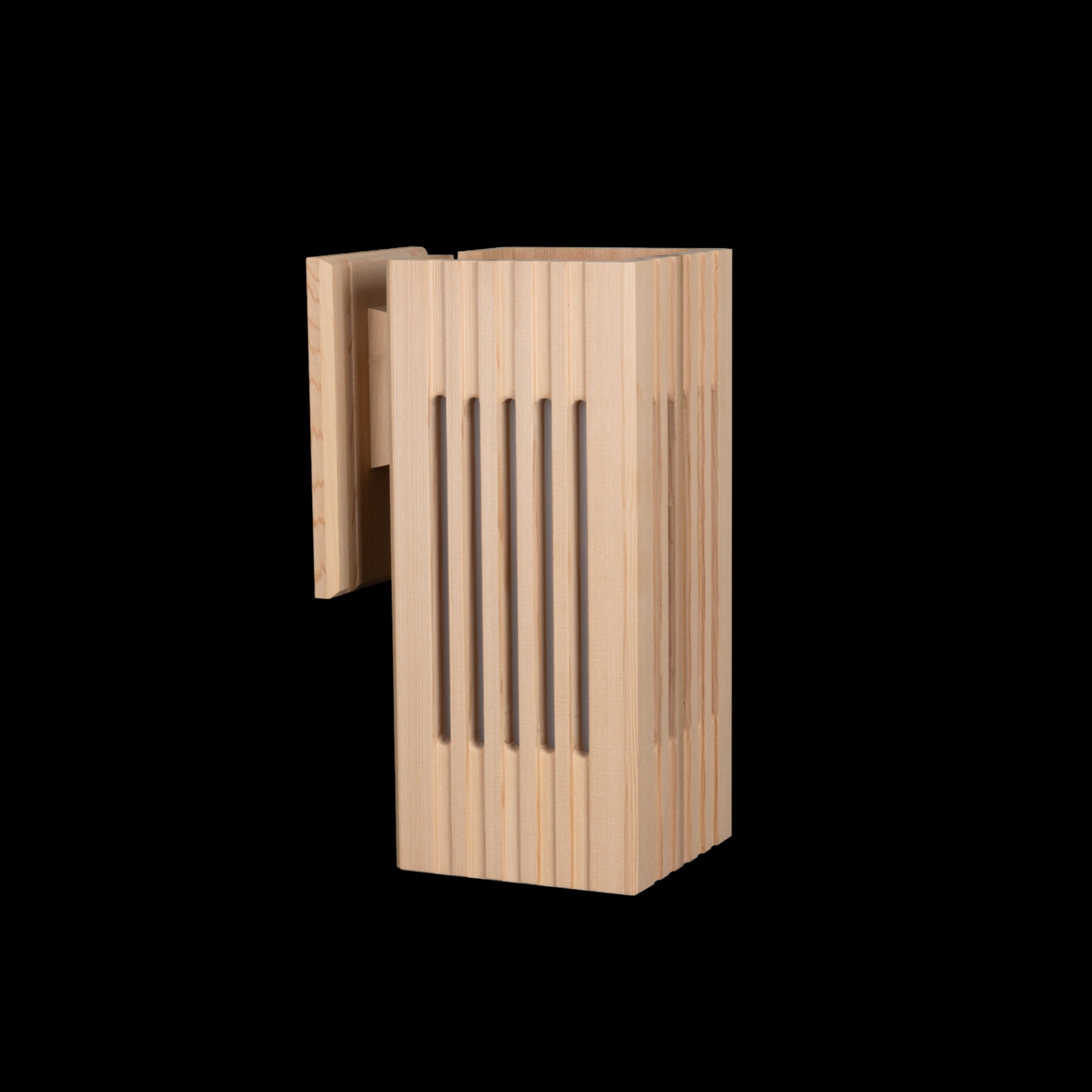 The 282 – 16” Large Sconce, at a dimension of 7” x 7”, makes a more profound statement of artistic craftsmanship in its environment. Its subdued, wood filtered light output on three sides creates an inviting ambiance. With a top cap it is wet location rated. Without a top cap it is damp location rated. It is certified to UL Standard 1598.